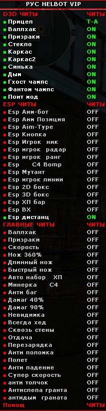 не забывайте что если вы включили функцию стрельба без отдачи, то вам нужно включить прицел в разделе esp читов.